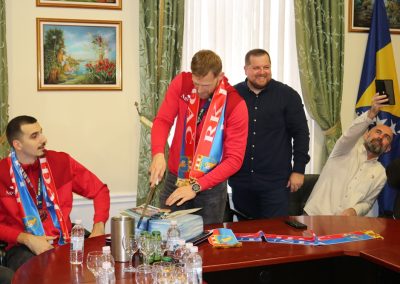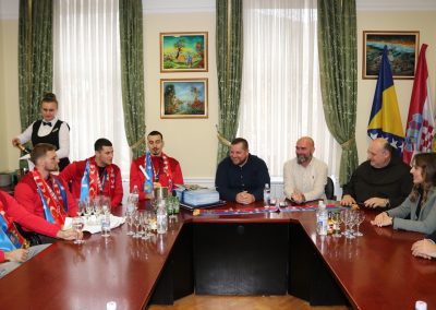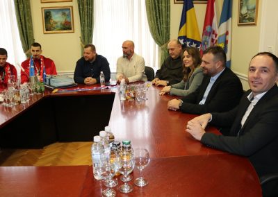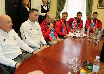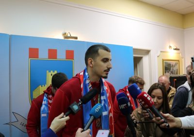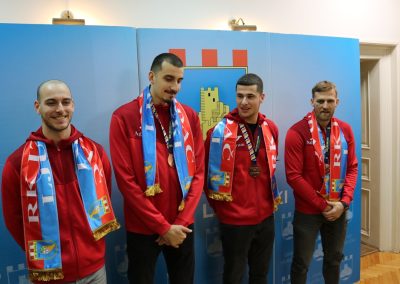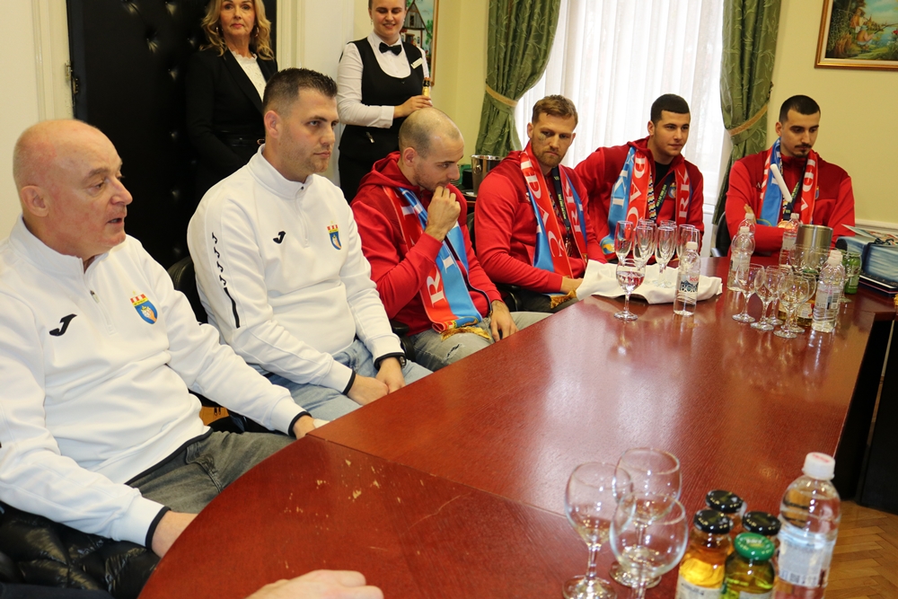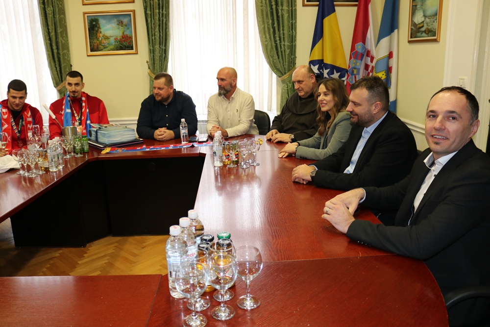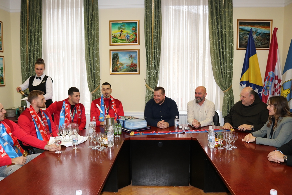 Prije velike proslave, za njih je upriličen svečani prijam u zgradi Gradske uprave gdje su ih dočekali gradonačelnik Vedran Markotić i predsjednik Gradskog vijeća Tihomir Kvesić, dok su prijmu nazočili i predstavnici Županije Zapadnohercegovačke – predsjednik Skupštine Ivan Jelčić, dopredsjednica Vlade i ministrica financija Blagica Leko i ministar MUP-a Mladen Bebek, te predstavnici RK Izviđač i humački gvardijan i župnik fra Miro Šego, koji su im čestitali na uspjehu i nazdravili njima u čast, a nije izostala niti slavljenička torta.