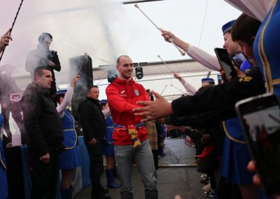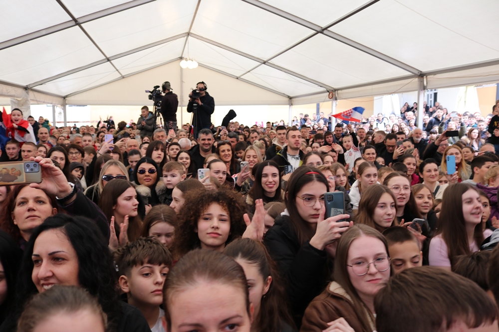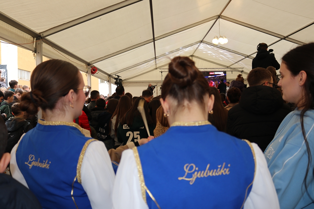 Potom se fešta preselila u dvorište Osnovne škole Marka Marulića u središtu grada, gdje su ljubuške heroje dočekalii i pozdravili brojni građani svih generacija, ali i navijači iz drugih sredina, a među njima i oni koji su iz Kiseljaka došli na proslavu. Zastave su se vijorile, skandiralo se njihova imena uz pjesmu i veselje. Posebno dirljiv bio je trenutak kada su igrači stupili pred okupljene, svjesni da ih ne dočekuju samo navijači, već njihovi susjedi, prijatelji i obitelji. Njihov uspjeh nije samo sportski rezultat, već priča o zajedništvu, radu i vjeri u vlastite snove.