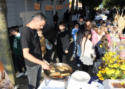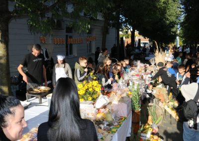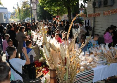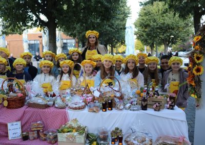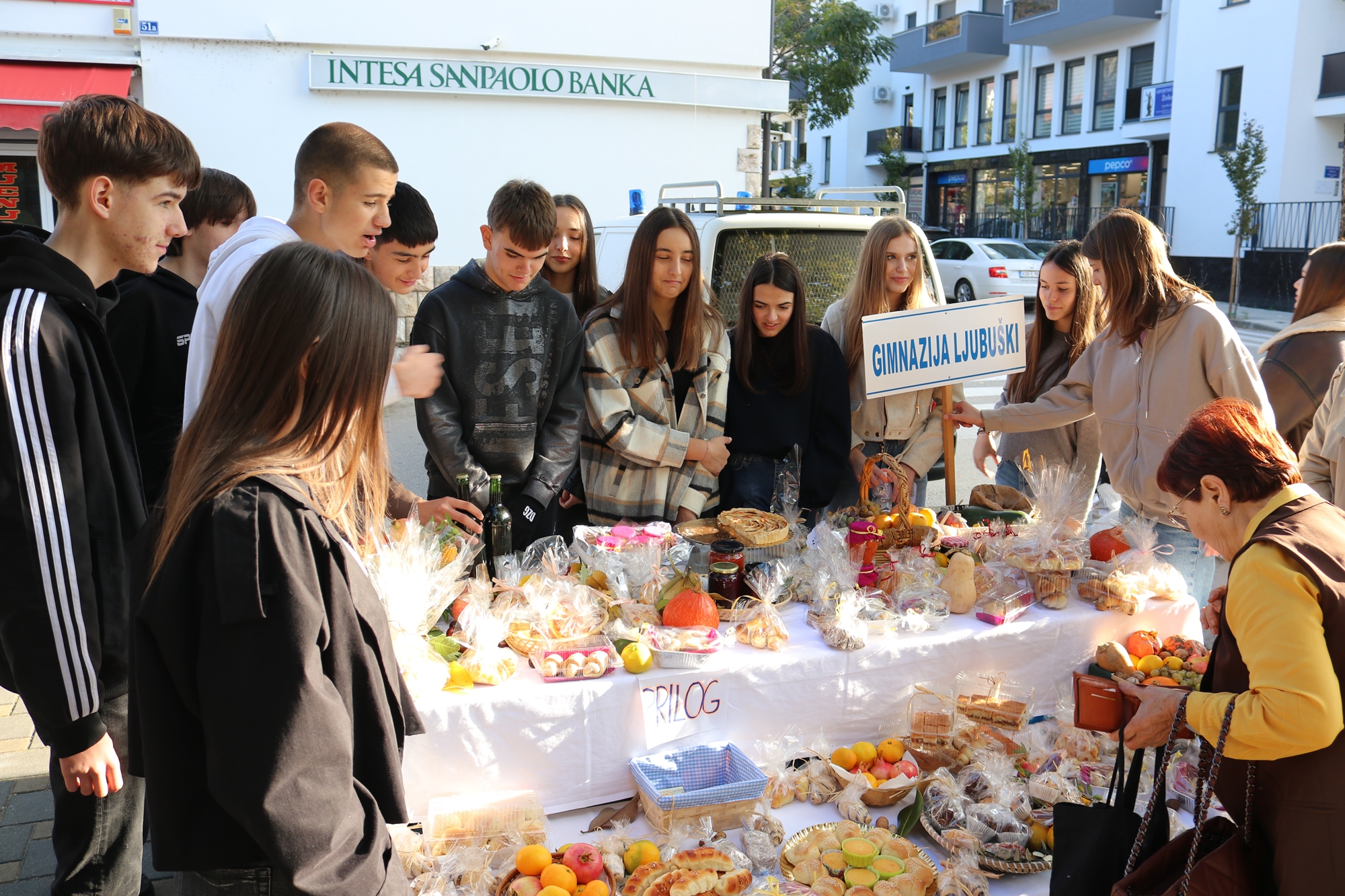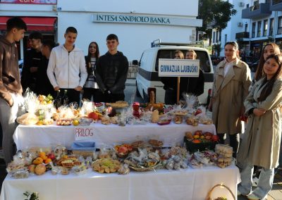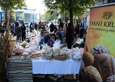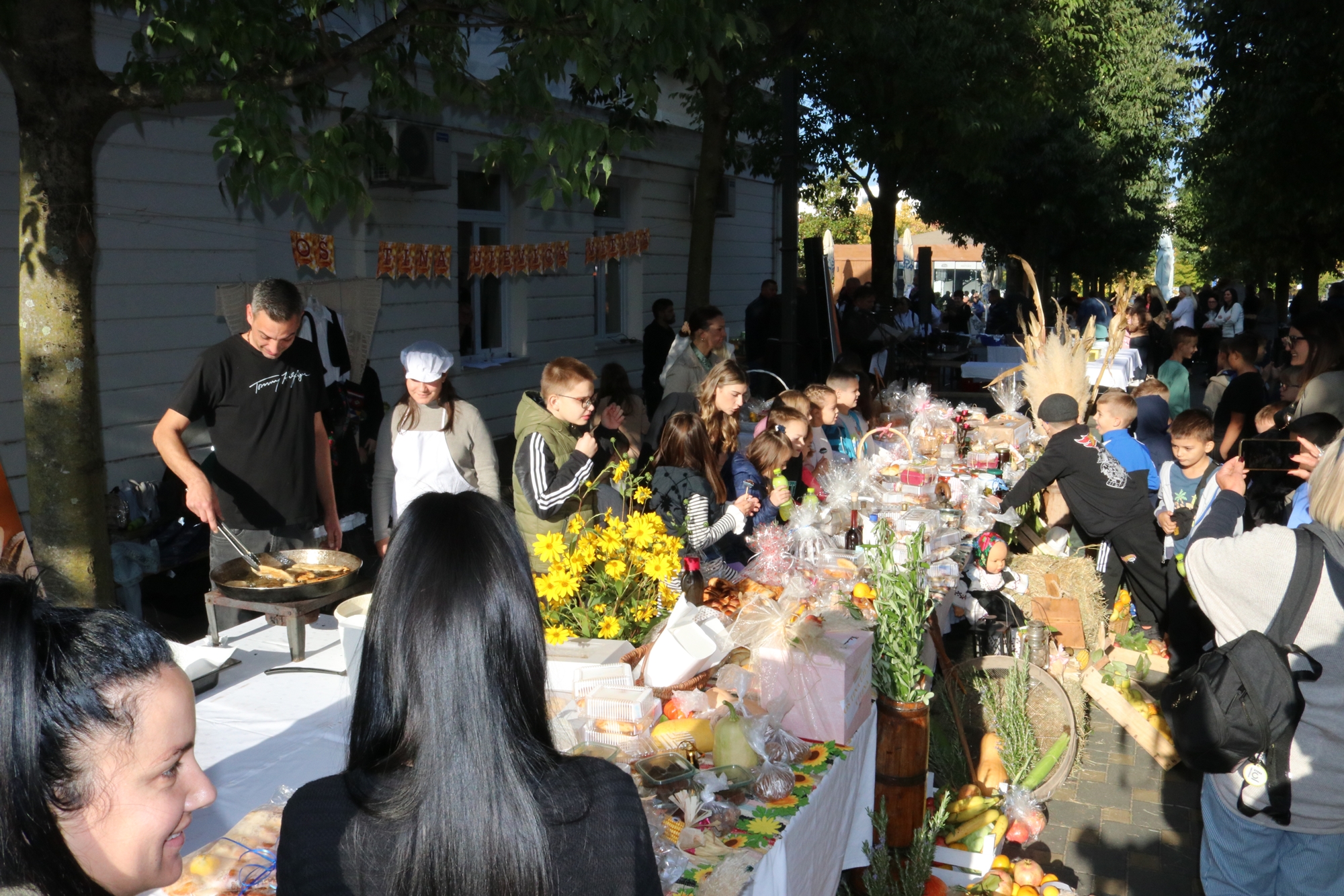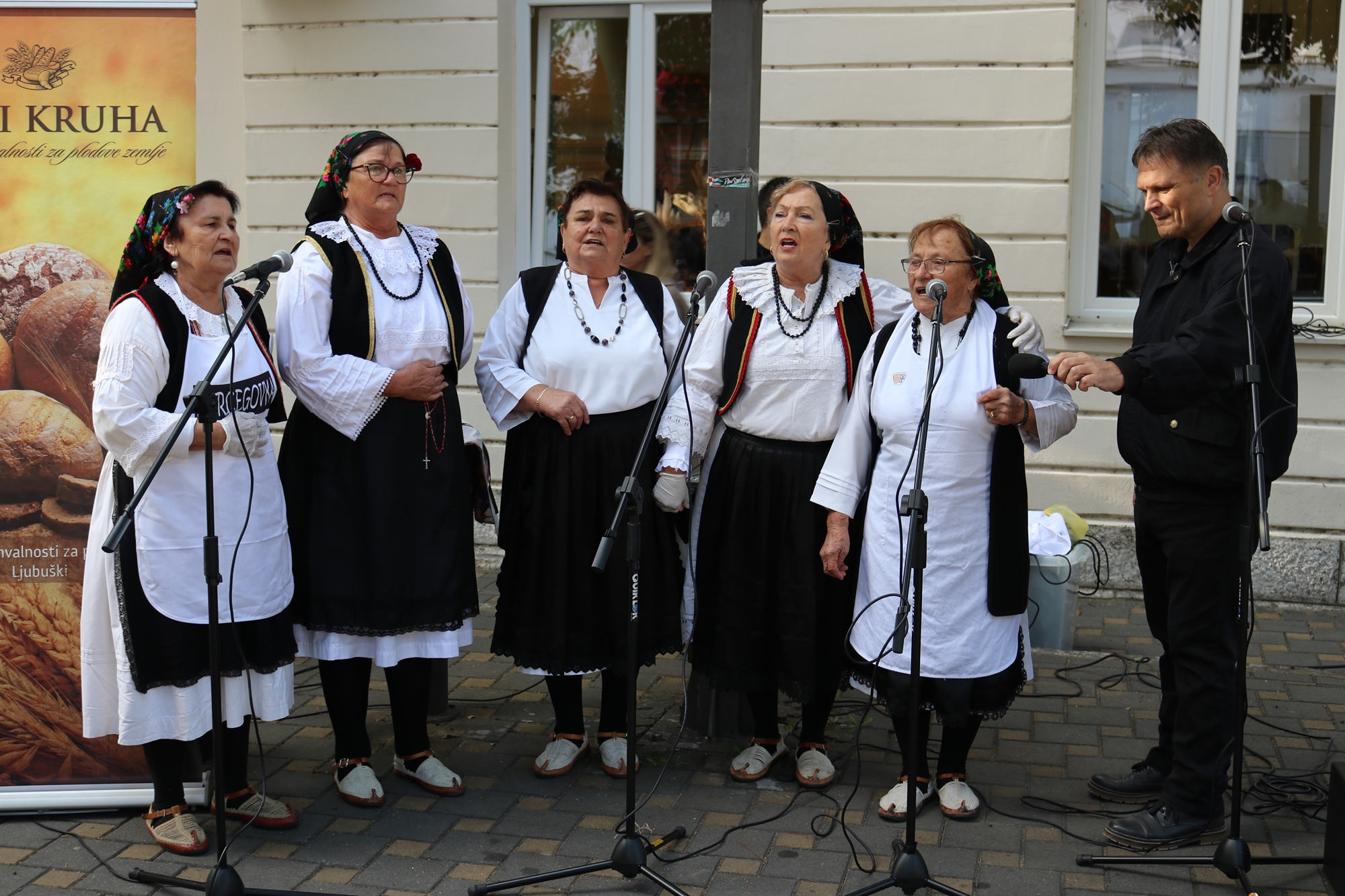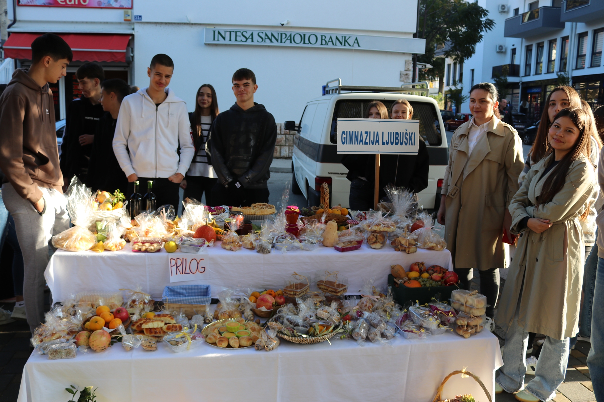 Od ranog jutra trgom se širio miris kruha, peciva, kolača i plodova zemlje koje su pripremili učenici osnovnih i srednjih škola uz pomoć roditelja i nastavnika, dok su ljubuške bake iz HKUD sv. Ante pripremale uštipke i puru s lučnicom te su se i pjesmom pobrinule za dobru zabavu okupljenih.